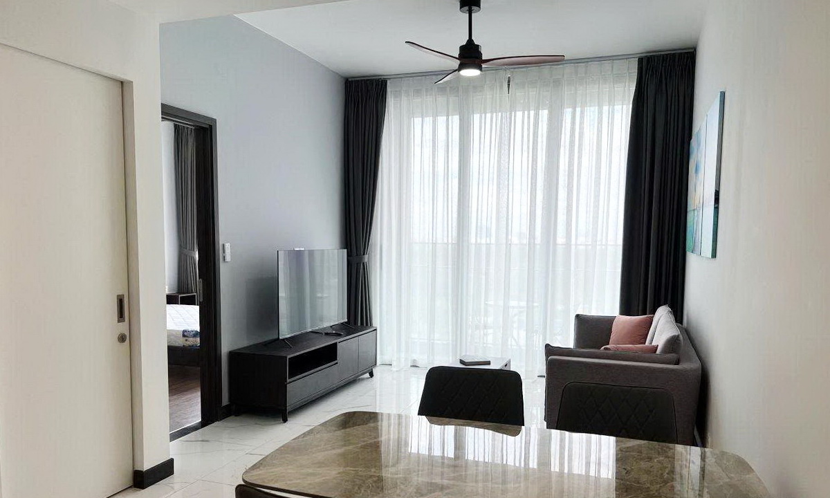 Căn hộ gồm 1 phòng ngủ, phòng khách, khu bếp riêng, khu giặt phơi và 1 phòng tắm & WC. View hướng sông Sài Gòn, tầm nhìn thoáng mở, đón gió mát tự nhiên, mang lại cảm giác thư giãn và dễ chịu. Nội thất được trang bị đầy đủ, chất lượng tốt, bố trí tiện dụng, phù hợp khách ở lâu dài.