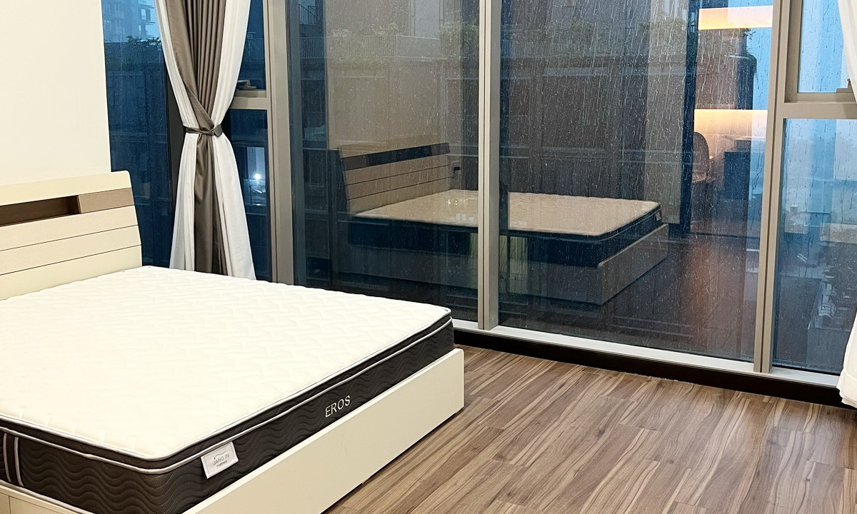 Bố cục căn hộ gồm 3 phòng ngủ, phòng khách rộng, 2 WC, khu bếp – tủ bếp tiện nghi. Nội thất được trang bị đầy đủ và chăm chút kỹ lưỡng, tạo cảm giác thoải mái ngay khi dọn vào ở.